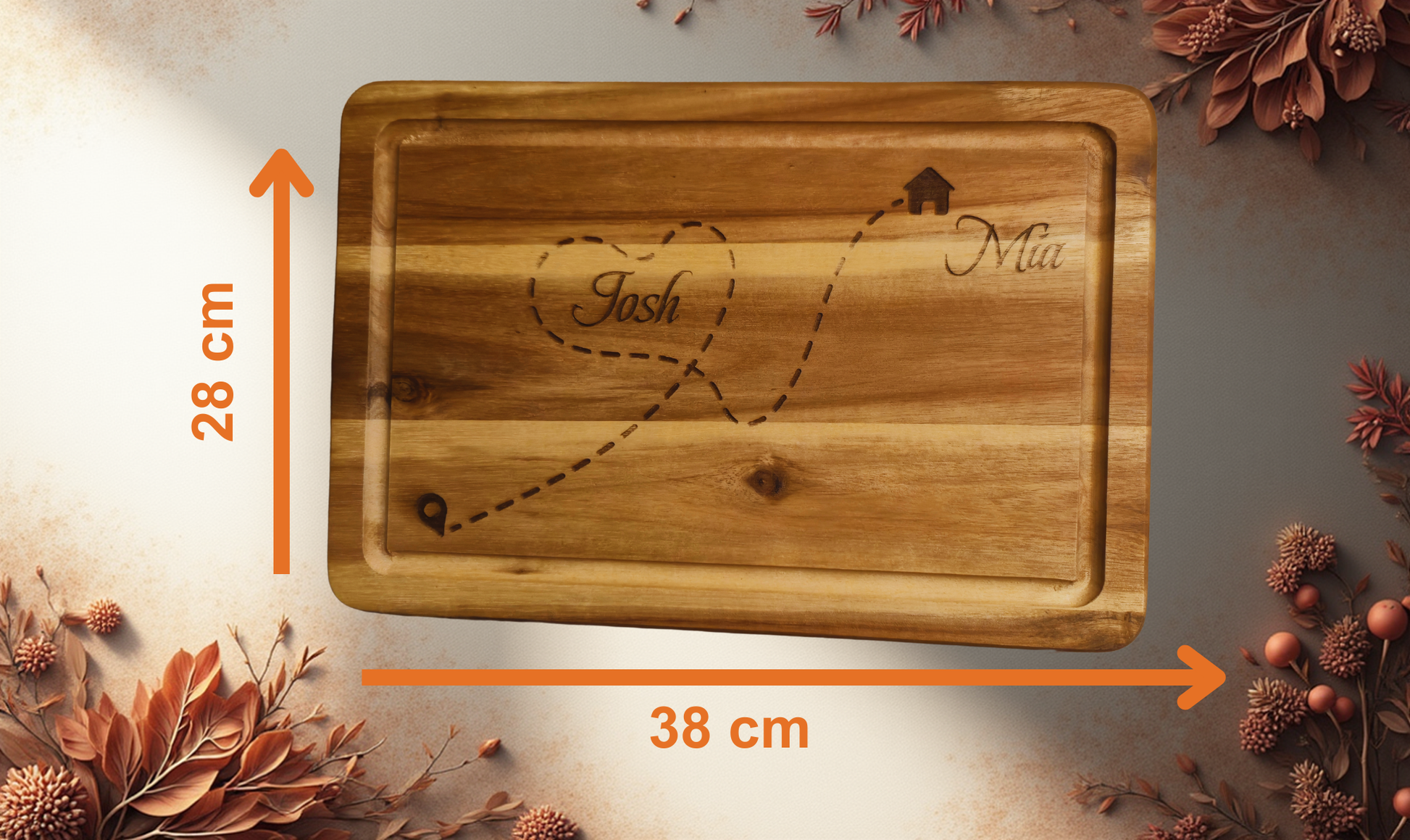 Massives Schneidebrett aus Akazienholz – mit Saftrille | Zwei Größen verfügbar